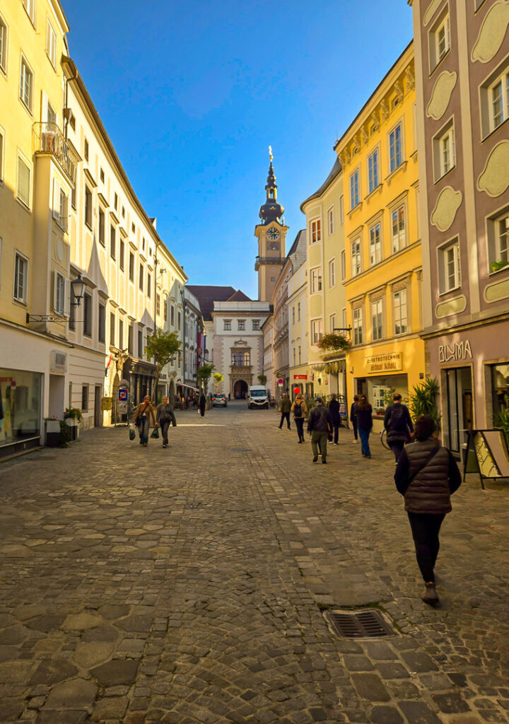 Linz, Austria Our final stop offered a mix of historical charm and modern artistic flair. We strolled through the old town, enjoyed coffee and pastries at a lovely café, and did some shopping. I found a fantastic vintage shop and picked up a few well-aged postcards and a couple of World War I service pins. ↓