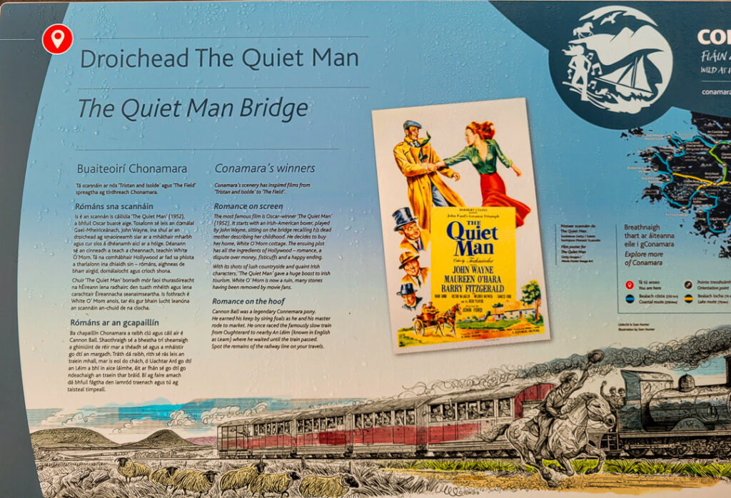 The next morning, considering the amount of Hop House Lager I’d consumed the night before, I was surprisingly functional and even managed to get us checked out of the hotel in record time. Our plan for the day was simple: make our way toward Connemara, with a quick stop at the Quiet Man Bridge. As fans of the classic film, we couldn’t pass up the chance to see it in person. If you’re a fan too, here’s a great resource that highlights the different filming locations used throughout Ireland.
