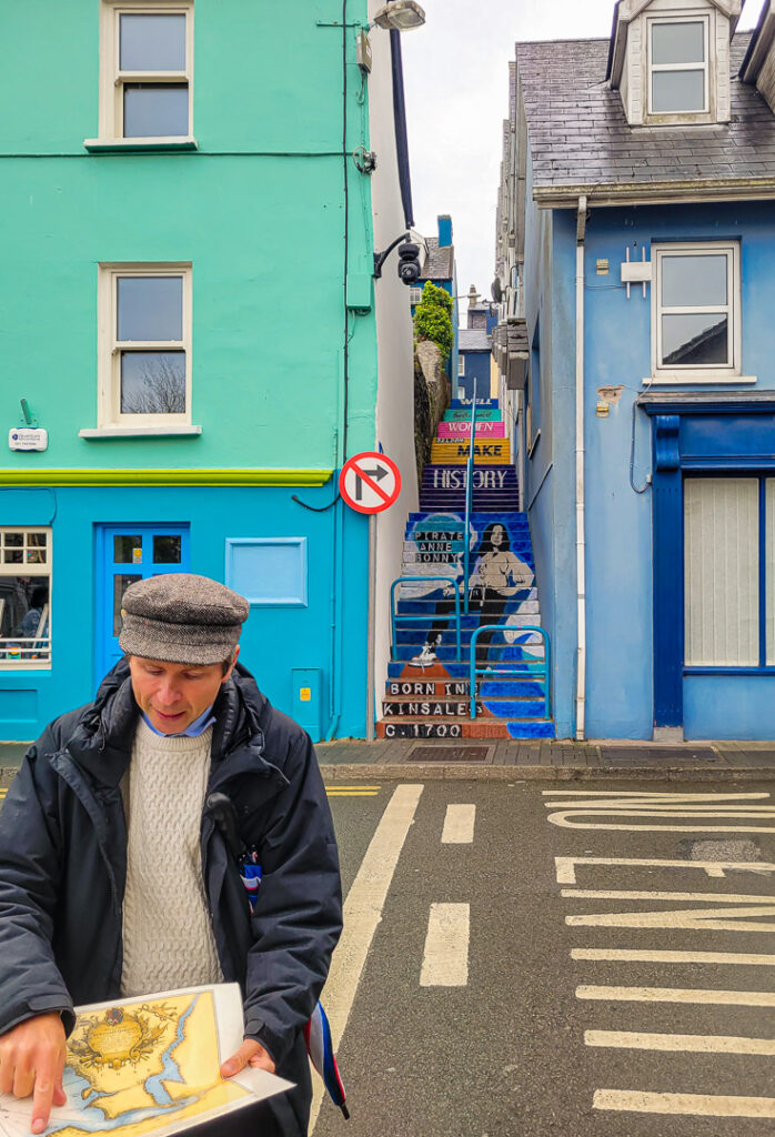 We did our city walk with Barry Moloney from Historic Stroll Kinsale where he explained where the original shoreline from the strategic port used to be, showed us where medieval walls once stood and a how the Battle of Kinsale took place. Next, we walked through some fancy real estate towards the stone ramparts of Charles Fort, a star-shaped coastal fortress built in the late 17th century to defend the harbor, renowned for its striking design, historical significance, and panoramic views of the Atlantic. Kinsale’s downtown is very walkable, with some great shopping and restaurants.