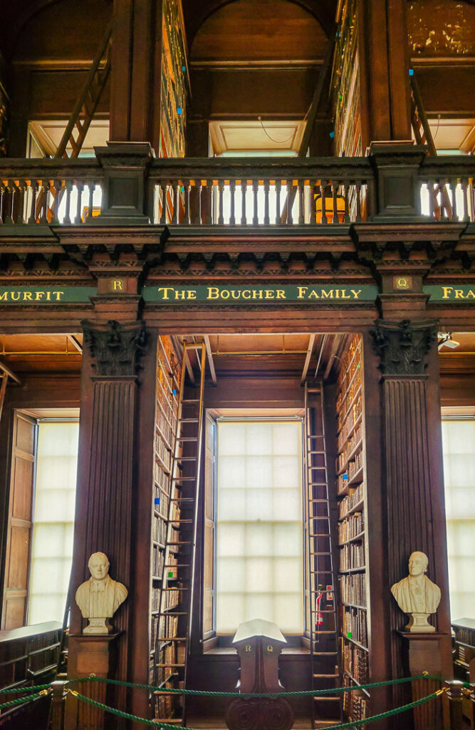 After exploring the exhibit, we went upstairs to the famous Long Room in Trinity College’s Old Library. Stretching nearly 65 meters, it’s one of the most impressive libraries in the world. For centuries, its dark wooden shelves held more than 200,000 of the library’s oldest books.