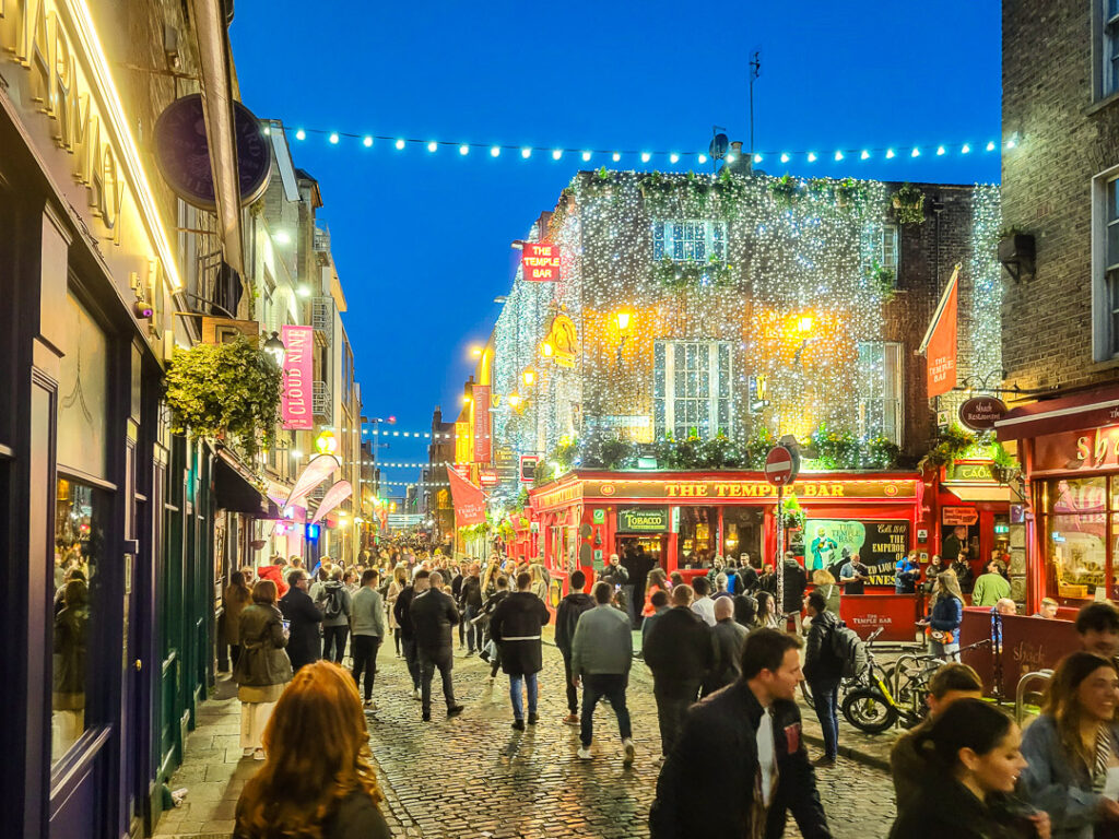 With full bellies and imaginations captured, we strolled toward the cultural quarter, taking in the vibe of the city night. The famous Temple Bar looked vibrant and lively, but a bit too touristy for our taste, so we decided to pass on going inside.