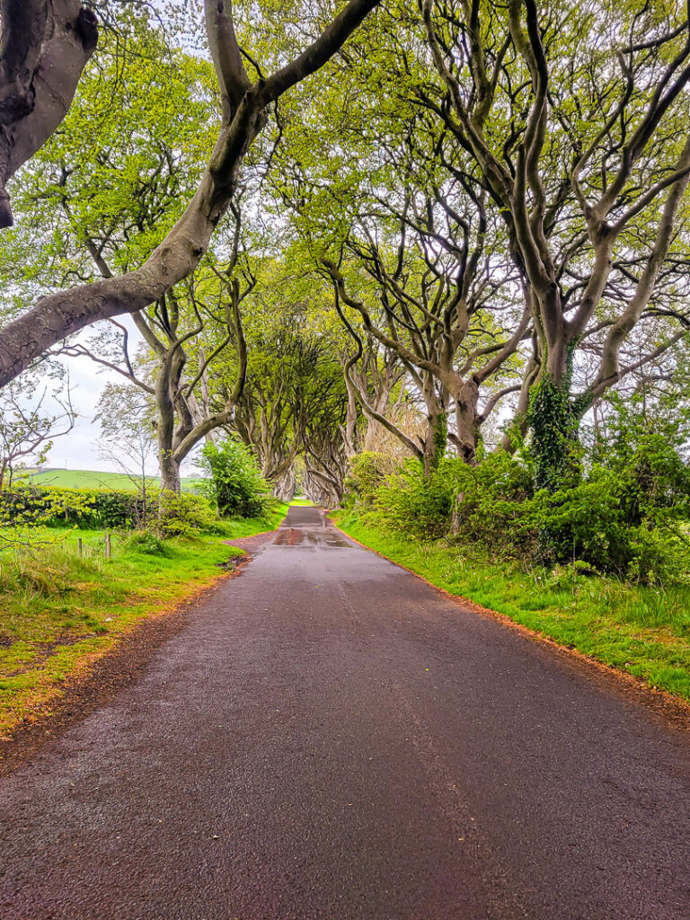 After the Causeway, we made a short detour to the famous Dark Hedges. Planted in the late 1700s by James Stuart to frame the entrance to his Gracehill House estate, the avenue has become one of Northern Ireland’s most photographed sights. Its tunnel of beech trees, their branches twisting overhead, creates an eerie yet beautiful canopy that feels almost otherworldly.